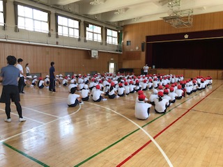→団体演技で取り組む内容についての説明がありました。基本姿勢から丁寧に始まりました。