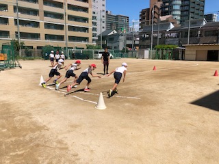 →短距離走の練習をしました。入退場の仕方の確認をしてから、スタートの練習をしました。