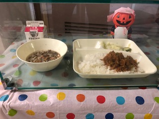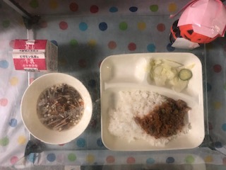 タコライス、もずくとしろねぎのスープ、キャベツときゅうりのサラダ、牛乳