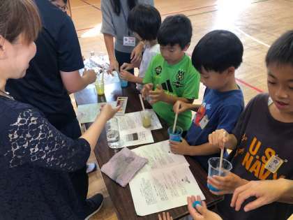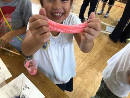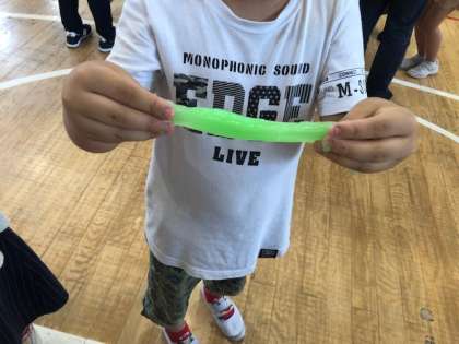 5時間目、3年生のPTC集会がありました。講堂でスライム作りをしました。それぞれ好みの色を絵の具で付けて、スライム作りを楽しんでました。
