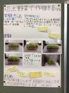 →ノーベル化学賞を受賞した吉野彰さんの影響でしょうか。自由研究発表会をしました。付箋によいところなどのコメントを書きました。未来のノーベル賞が出るかもしれませんね。