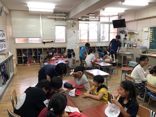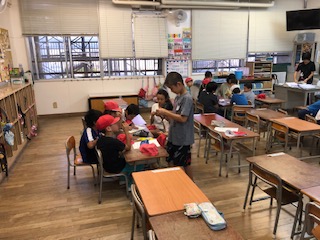→5時間目に、明日の遠足に向けての事前集会がありました。リーダーを中心に「めあて」や「合言葉」を決めたり、目印のリボンを赤白帽につけたりしました。良い天気で楽しい活動ができますように!