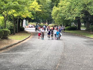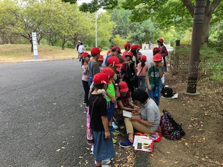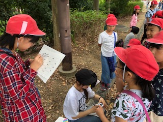 オリエンテーリングの様子(ポイントC他)です。班の仲間と協力してポイントを探しています。特別ポイントの校長先生はどこかな?