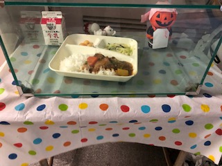 ハヤシライス(米粉)、キャベツのひじきドレッシング、さくらんぼ、牛乳