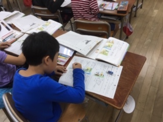 →国語科学習でお話し作りをしました。絵を見て会話文を書きました。
