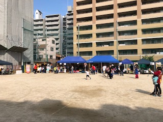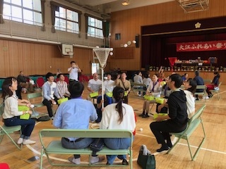 →町内対抗の玉入れ大会に教職員も参加させていただきました。負けず嫌いの教職員が多かった?せいか、少し頑張りすぎ?てしまいました。皆さんとともに、とても楽しい時間を過ごしました。