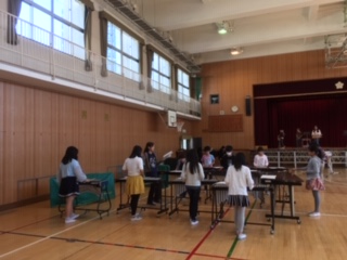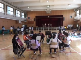 →区音楽発表会に向けて、パートごとに練習をしました。パプリカなどを演奏をします。