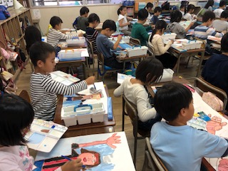 →図画工作で絵画作品に取り組んでいました。