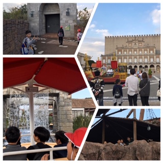 →スペイン村での班活動が終わりました。たくさんのアトラクションや買い物を楽しみました。大満足!