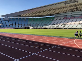 →大きなトラックに戸惑いながらも、長い直線コースを最後までしっかりと走り切りました。