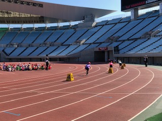 →男女クラス毎の代表児童が出場しました。心一つにバトンをつなぎ走り切りました。