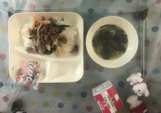 ビビンバ、わかめスープ、アーモンドフィッシュ、牛乳