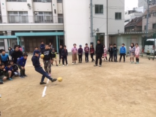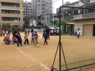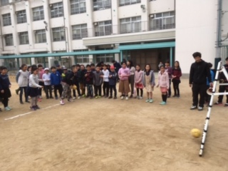 →放課後に運動委員会が考えたPK大会をしました。1チーム3人で防球ネットにボールが当たればゴールになります。低学年も女子児童も楽しくできました。低、中、高学年で優勝チームを決めました。大変盛り上がった楽しいイベントでした。