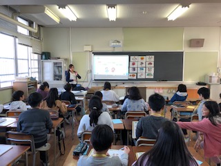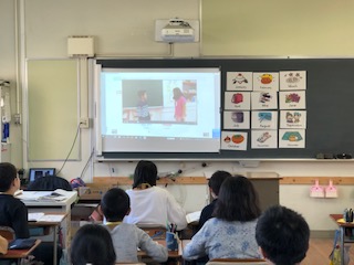 →5年生が外国語活動の学習に取り組んでいました。楽しみながら積極的に活動していました。