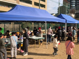 →地域のみなさまによる冬の恒例の行事です。本当にありがとうございます。子どもたちの笑顔が溢れる楽しい一日の始まりです。