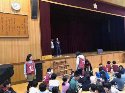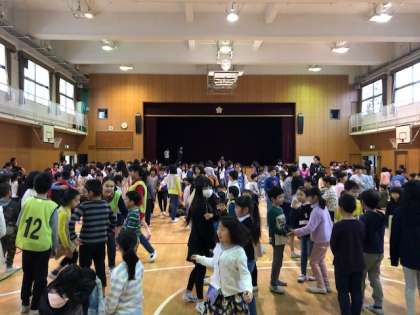 集会委員会の子どもたちのリードで、たてわり班を中心に仲間集めの遊びを楽しみました。