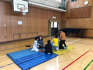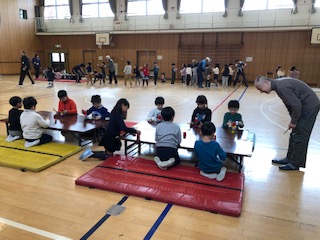 今日の2、3時間目に、地域の皆さんとともに「昔あそび」をしました。