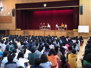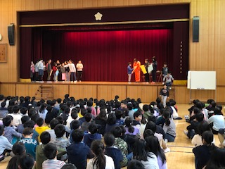 また、給食委員会による学校給食の始まりについての話があり、あわせて給食にまつわる劇を披露してくれました。これからも残さず、おいしく給食をいただきましょう!