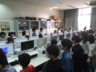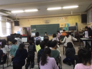→来年度クラブ活動をする3年生がクラブを見学しました。器楽クラブの演奏を見ました。コンピュータークラブが名刺を作っている様子を見ました。