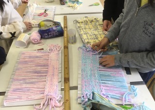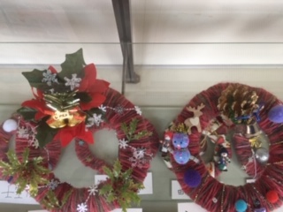 →将棋クラブは対戦しながら上手になってきました。手芸クラブはクリスマスリースを作り、職員室前のガラスケースに入れて展示しました。今は座布団作りに取り組んでいます。