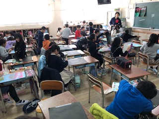 →版画に取り組んでいました。仕上がりに気をつけながら、丁寧に色付けをしていました。出来上がりが楽しみです。