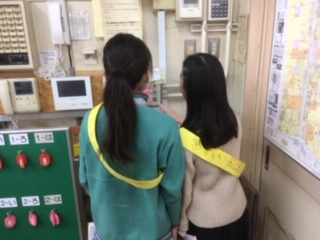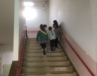→2月の生活目標『右側通行をしよう』の取組として、運営委員が校内放送で呼びかけ、廊下や階段で声かけをしています。