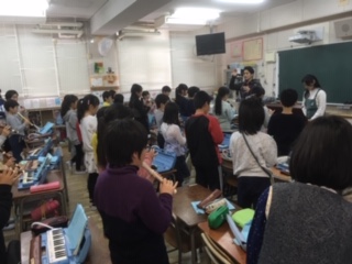 →合奏の練習をしました。リコーダーでパプリカを吹きました。明日の学習参観で発表します。