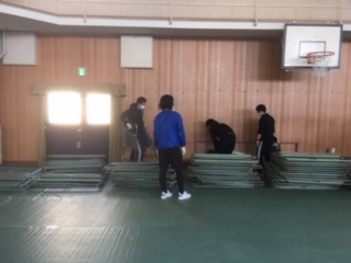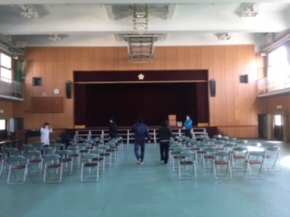 ・18日に予定されている卒業式の準備をしました。児童席は長椅子からパイプ椅子にかえて、間隔をとりました。無事に卒業式ができることを願っています。