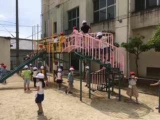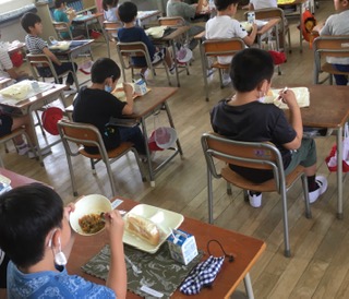 ・1年生は分散ではなく一斉登校をしました。休み時間は楽しく遊びました。給食は前を向いて、お話をせずに食べました。美味しい食べました。