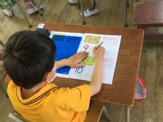 ・学校が再開して3日が経ちました。1年生が少しずつ学校生活のリズムに慣れてきました。算数では数字を書く練習をしています。国語はひらがなを書く練習をしています。書く姿勢や鉛筆の持ち方に気をつけて、がんばっています。お家でも見てあげてほしいです。