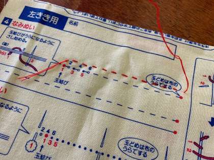 今日は、い組も裁縫をしました! 玉結び・玉止めの復習をしたあと、なみ縫いの練習をしました。練習布の点線の上を上手に縫うことができました。