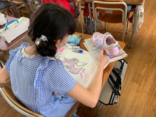 今日は、ろ組で図工をしました!前回は、切り絵でしたが、今回は、自分の靴を描きました!