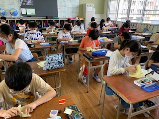 今日は、い組では、家庭科の裁縫で、玉留めや、なみ縫いの復習をしてから、名前のぬいとりをしました!だんだん慣れてきたようでスムーズにすすみました!