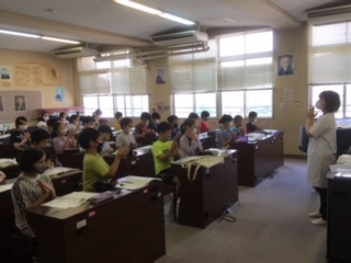 ・5年生は、音楽の学習で『ハナミズキ』を手話で歌う練習をしました。歌は歌えないので、音楽を聴いて、心の中で歌いました。早く声に出して手話で歌いたいです。