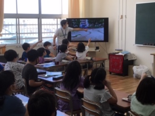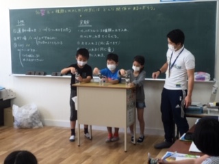 ・4年生は、理科『地面を流れる水のゆくえ』を学習しました。5月第4週の教材です。問題→予想→実験→まとめという学習過程で行いました。運動場の土、砂場の土、じゃりの3種類の土で水がよく染み込むのは、どの土でそれはなぜかを、皆で予想して実験しました。子どもたちが自分の考えを持ち、しっかりと話し合っていました。
