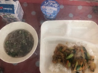 和風カレー丼、もずくとオクラのとろり汁、ヨーグルト、牛乳