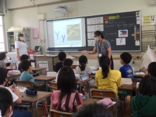・C-NETの先生と担任で外国語の学習をしました。ネイティブの先生の発音を聴いて、子どもたちは発音しました。また、簡単な会話をして楽しく外国語に触れることができました。