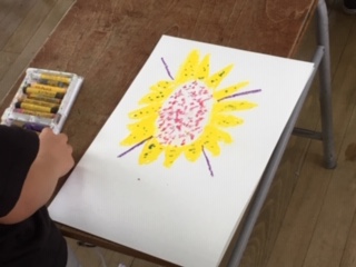 ・2年生の図工は、『見たこともない花をかこう』をしました。画用紙1枚に花瓶を描き、違う画用紙に見たことのない花を描きます。子どもたちは、想像豊かに楽しく描きました。