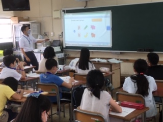 ・6年生は、外国語(英語)の学習をしました。本年度から外国語が教科となり、教科書を使って、学習を進めていきます。天王寺中学校の先生が週1回来てくれて、英語を教えてもらいます。