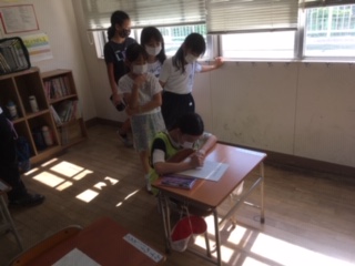 ・集会委員会が企画・運営をして、体育館でたてわり班を使った集会活動をしています。しばらくは動画配信をして、ゲームの説明を見て、教室で活動します。