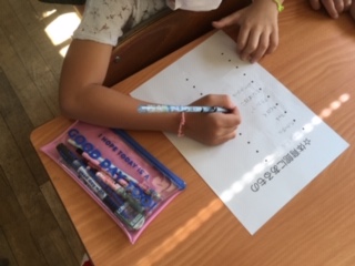 今回は体育館にあるものをリレーしながら紙に書くゲームです。楽しくできました。