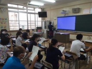 ・月曜日の全校朝会をTeamsを使ってするために研修をしました。学校と家庭をつなぐ双方向通信です。校内での活用として全校朝会で実施してみます。そのために各学級で設定しました。