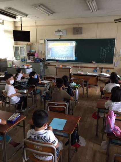 今日はTeams(双方向通信)を使って児童朝会を実施しました。先週から少しずつ準備を進めていたこともあり、トラブルもなく各教室に映像が映し出されました。今日は大江小学校の「いじめについて考える日」ということで、校長先生からとても大切なお話しがありました。校長先生がみんなにむけてメッセージボードを使いながら話されたので、低学年の児童にもしっかりとお話しの内容が伝わりました。