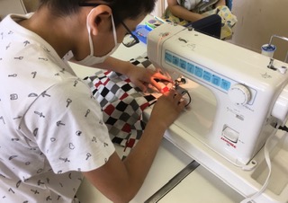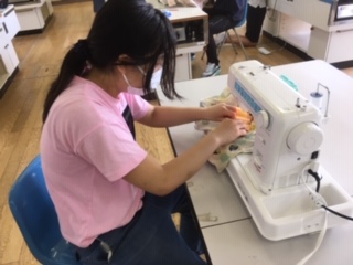 ・6年生がミシンを使って、エコバックを作りました。ポケットをつけたり、リボンをつけたりして工夫しました。7月1日からレジ袋有料化になりましたので、製作したエコバックが使えるので、よかったです。