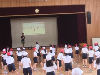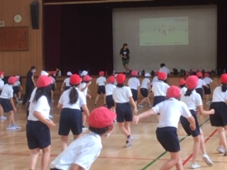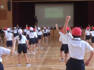 ・5年生が、運動会で行う団体演技のダンスの練習を始めました。DVDを見ながら、初めてダンスをしました。アップテンポの楽しい曲なので、出来上がりが楽しみです。