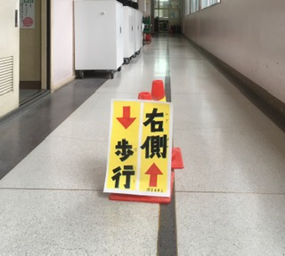 ・児童会の運営委員会が、『右側通行』の取り組みを行なっています。ポスターを階段の手すりに掲示したり、廊下に三角コーンを使って啓発したり、様々なアイデアを出し合って右側通行できるよう、取り組んでいます。
