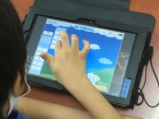 ・1年生が、初めてタブレット端末を使いました。タブレット端末の使い方や名称を学び、パスワードを入力してログインしました。自分の写真を撮って自己紹介をしました。子どもたちは覚えるのが早いですね。