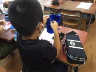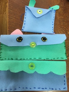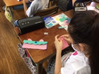 ・5年生の家庭科は、小物作りをしています。筆箱入れ、ティッシュペーパー入れ、小銭入れなどをまつり縫いやなみ縫いなどで、丁寧に縫いました。一人ひとりの個性があらわれていて楽しみです。