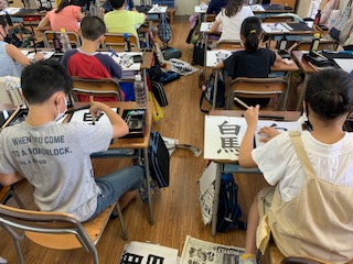 今日は2回目の習字です!『白馬』を書きました。馬のバランスがウマくかけず、苦戦していましたが、集中して、一画ずつ丁寧に書くことができました。