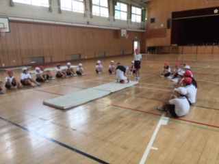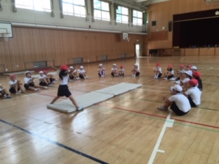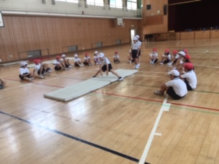 ・3年生がマット運動の学習をしました。前転、開脚前転、後転、開脚後転の4つから2種類を選んで発表しました。回転系の基本的な技がよくできていました。